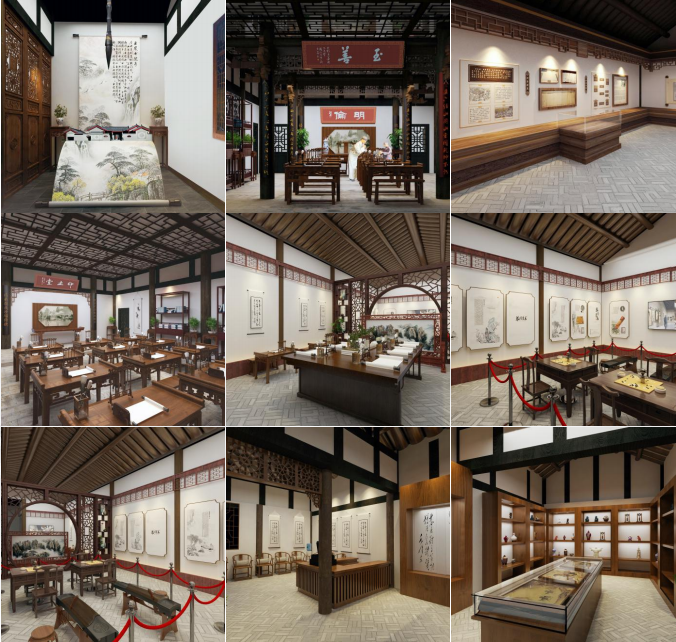 展廳運用古樸的色彩,按照“修舊如舊”的規劃設計原則,充分尊重書院歷史文化,充分展示書院文化內容與文化魅力,傳播與傳承優秀文化,加強了空間感和濃郁的傳統文化氣息。