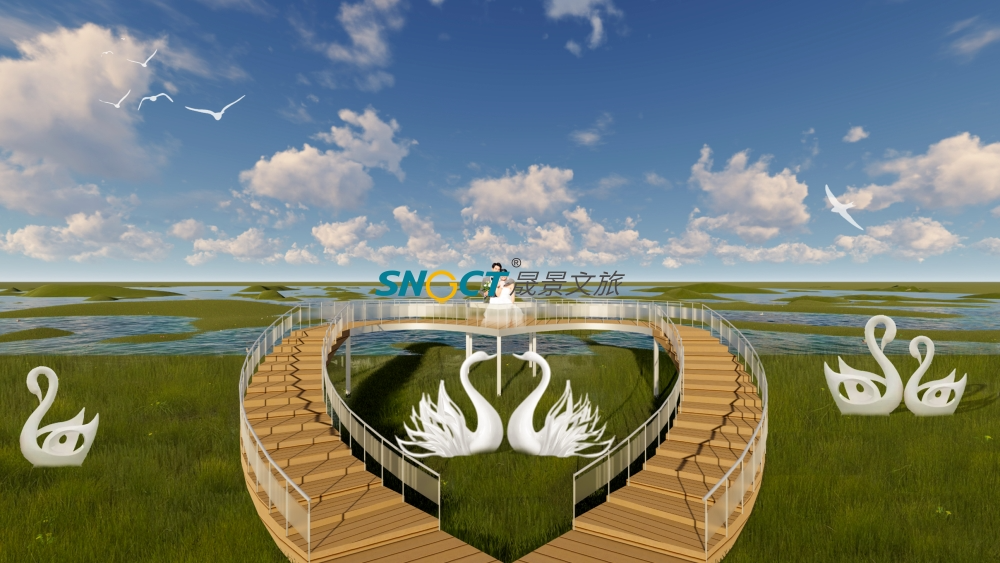 根據對資源的分析,我們總結出麥溪鄉大天鵝、藏綿羊等五大特色資源,基于天鵝湖的生態屬性,在整體規劃上以生態環境保護為開發原則,分階段對片區進行打造利用,在不破壞生態濕地環境的前提下,進行適度的旅游開發,確保環境的可持續發展。