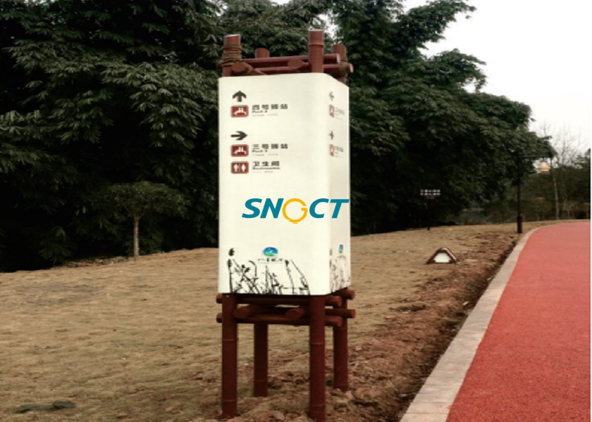 項目位于內江市東興區。高橋區小青龍河沿岸。全長13公里。設計范圍為生態休閑、生態濕地、田園牧歌、城市文化段。標識造型源自環境中最有特色的元素。導視設計采用自然材質的組合搭配,水墨畫布風格內容,使其與濕地公園的環境特色相融。
